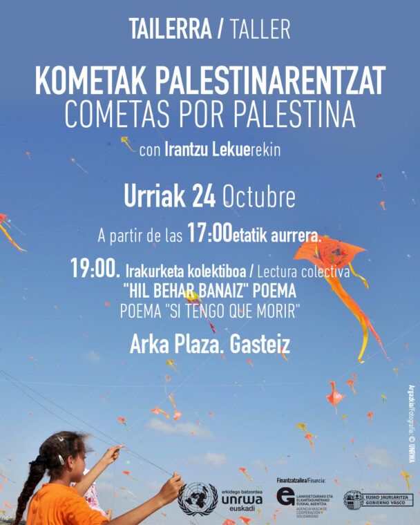 UNRWA Euskadi, junto a la artista Irantzu Lekue, te invita a participar en la acción artística “Cometas por Palestina” en defensa de la vida, la infancia y la justicia en Palestina.