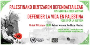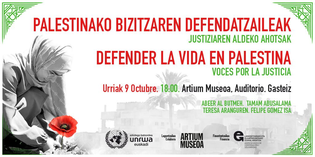 El jueves 9 de octubre, en el Museo Artium de Vitoria Gasteiz acogerá la Conferencia Internacional “Defender la Vida en Palestina: Voces por la Justicia”.