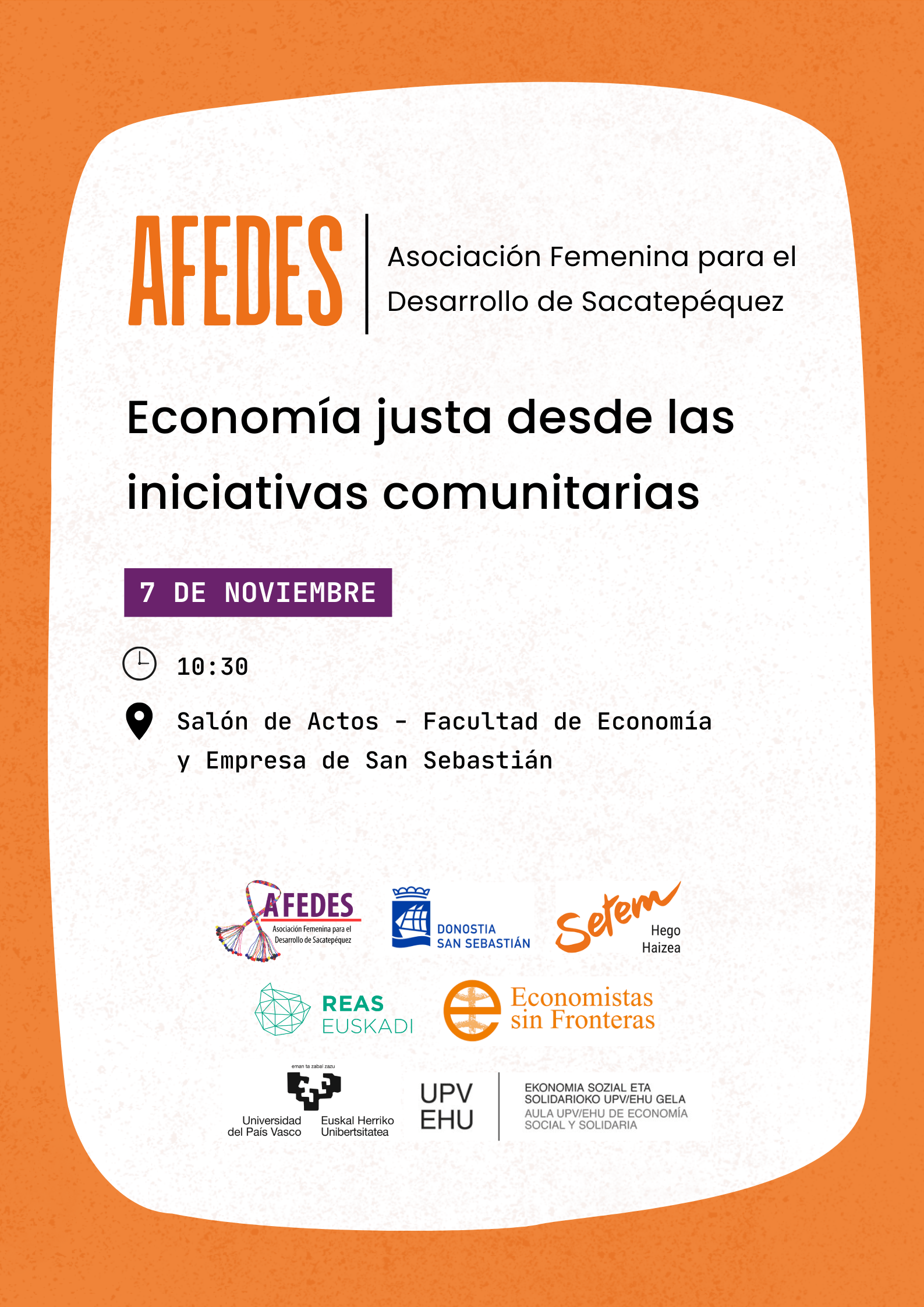 Este encuentro se realizará en la Facultad de Economía y Empresa de la UPV/EHU de Donostia (Plaza de Oñati, 1, 20018 Donostia / San Sebastián, Gipuzkoa) el viernes 7 de Noviembre a las 10:30.