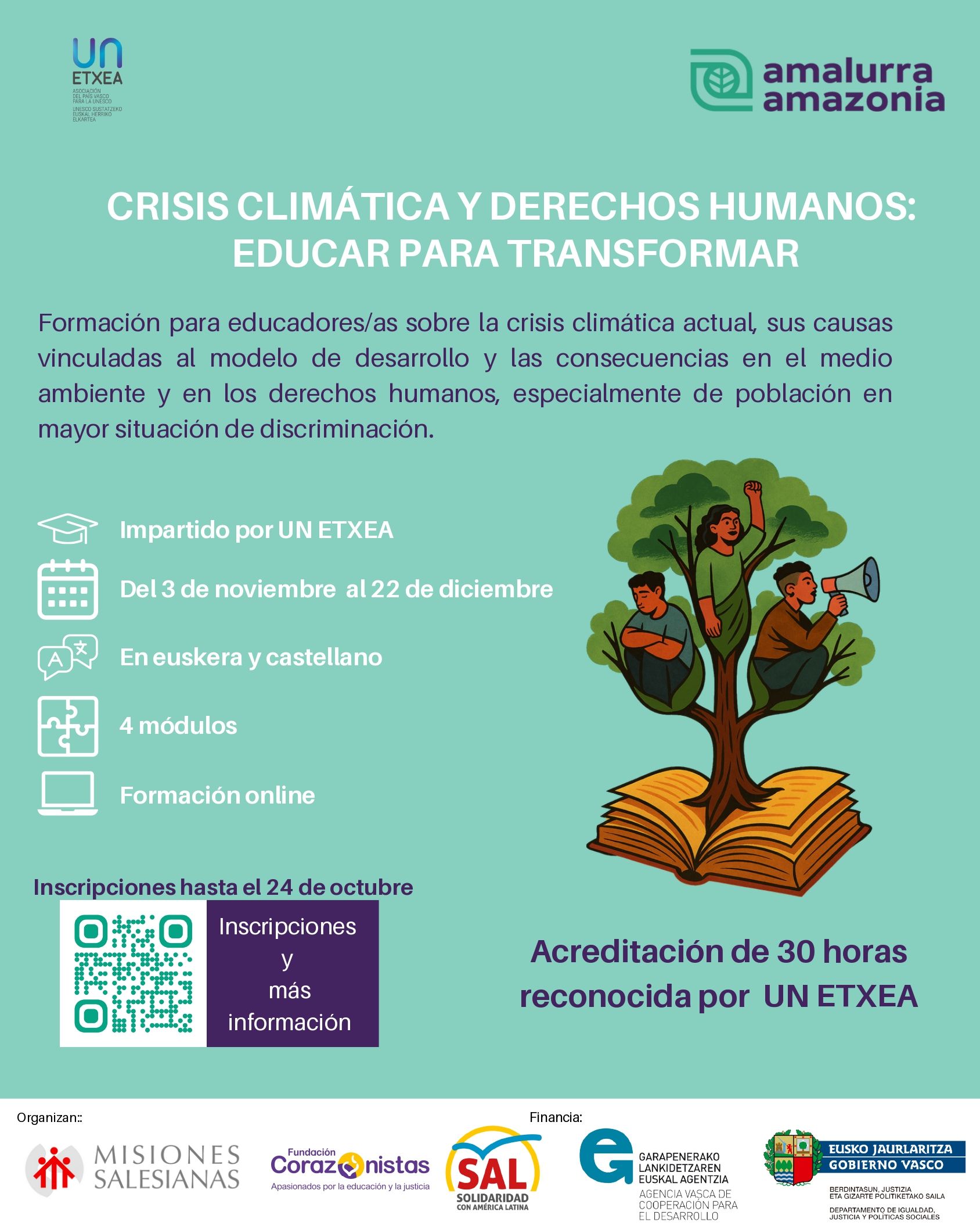 Os comunicamos que está abierto el plazo de inscripción para la formación online «Crisis climática y derechos humanos: educar para transformar».