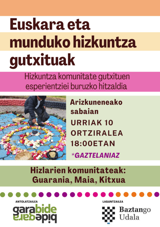 Hizkuntza komunitate gutxituen esperientziei buruzko hitzaldia, Garabide Elkartearen eta Baztango Udalaren eskutik.