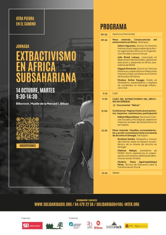 Esta jornada se encaja en la campaña Otra Piedra en el Camino , impulsada por Nazioarteko Elkartasuna – Solidaridad Internacional en colaboración con organizaciones senegalesas. La campaña visibiliza los impactos socioambientales de la minería a cielo abierto y promueve el derecho de las comunidades a vivir en un entorno saludable y justo.