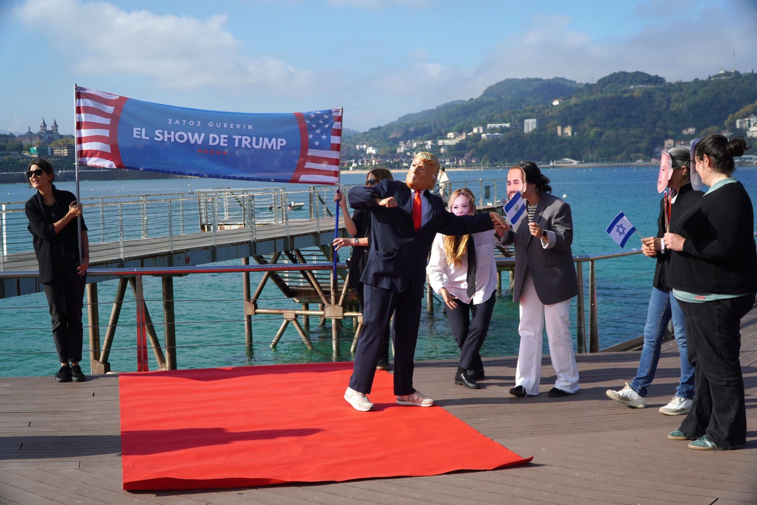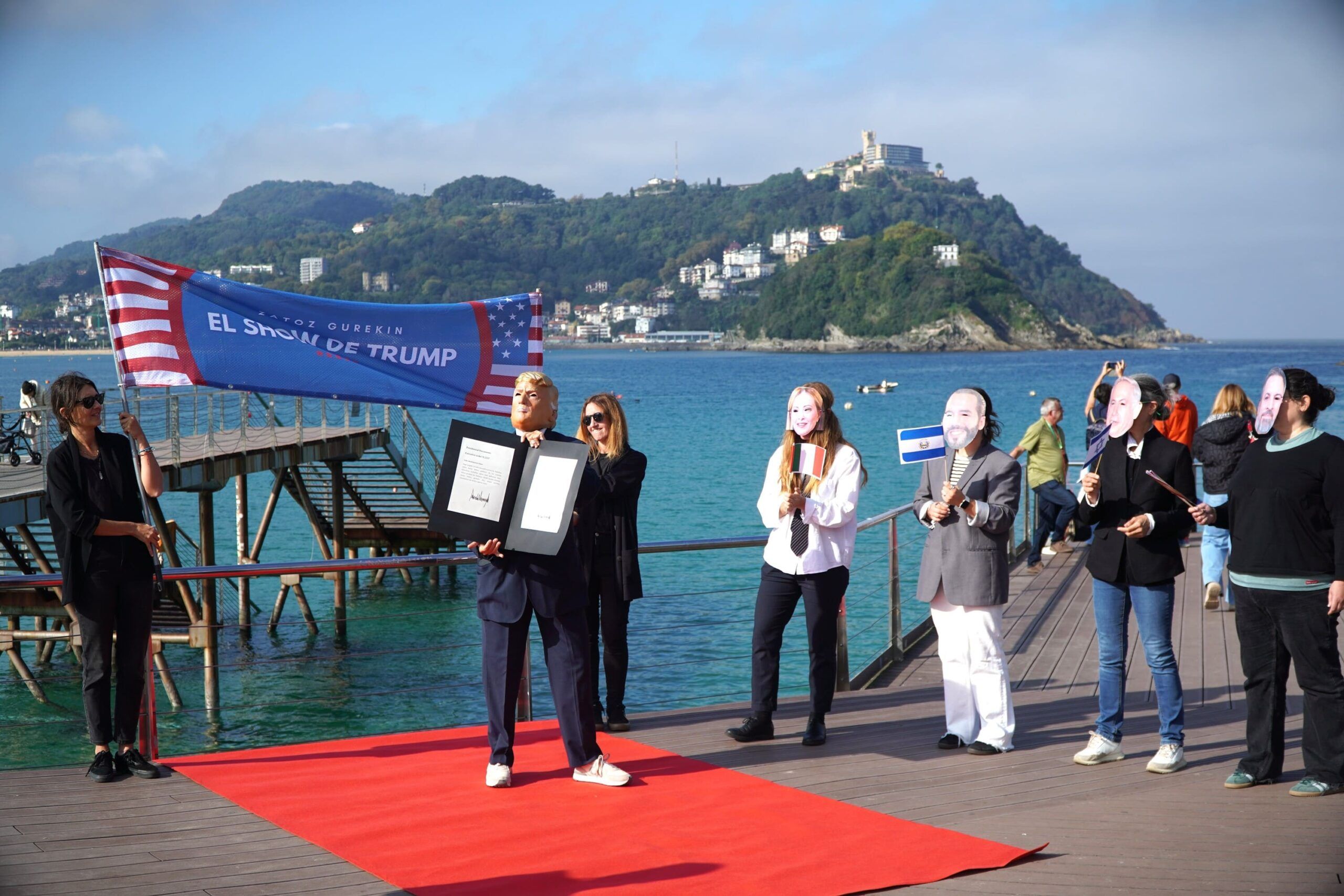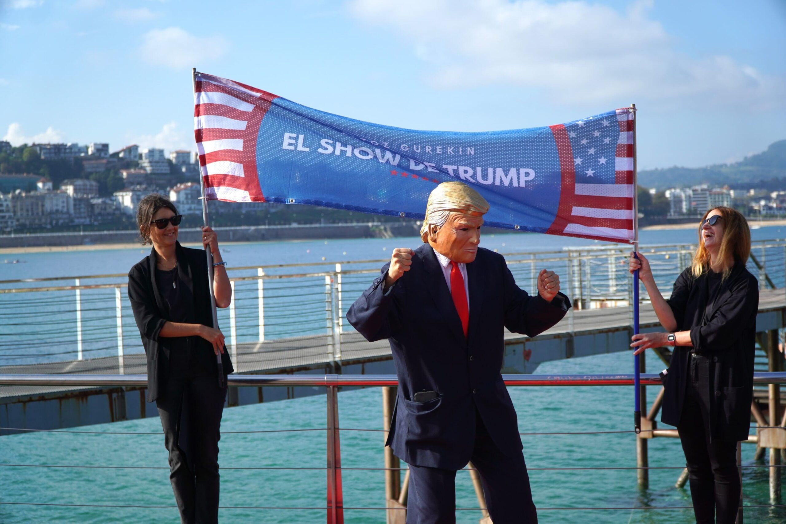 Bertan, performance bat egin dute demokraziaren krisia eta eskuin muturraren gorakada salatzeko. Fikziozko Donald Trump batek, Santiago Abascal, Giorgia Meloni, Nayib Bukele edo Benjamin Netanyahu bezalako pertsonaiek babestuta, bi agindu exekutibo sinatu ditu: bata, milaka pertsonaren asilo-eskubidearen aurkakoa; eta bestea, Gaza resort bihurtzeko Ekialde Hurbileko Riviera Plana. Amaieran, hainbat ekintzaile agertu dira, espazioa hartuz eta Trump eta bere aliatuak ihes egitera behartuz, demokraziaren aldeko oihuen artean.