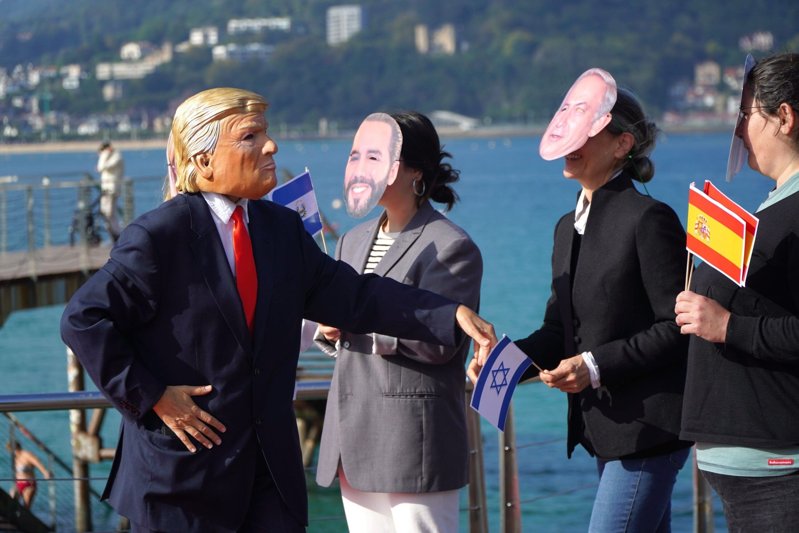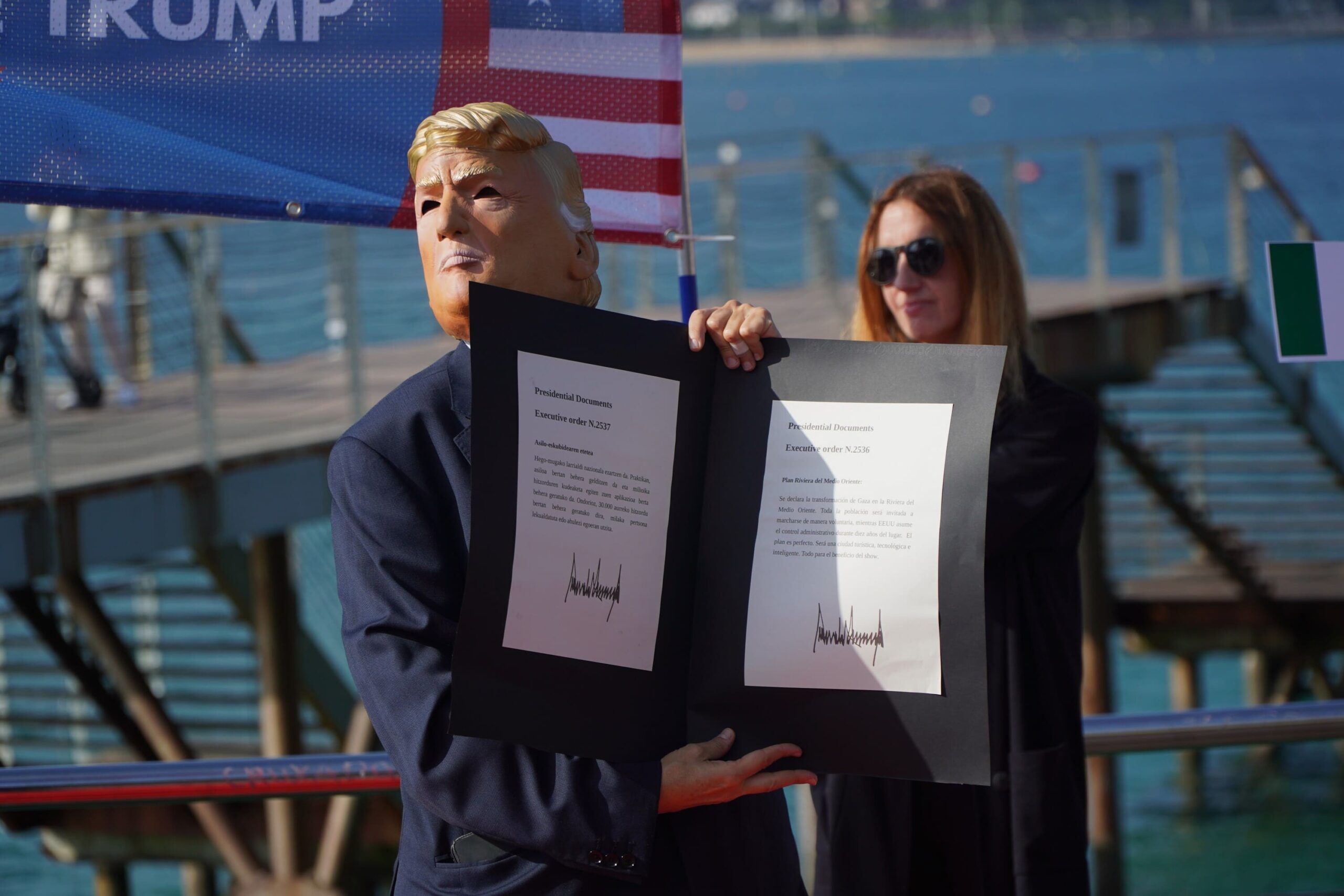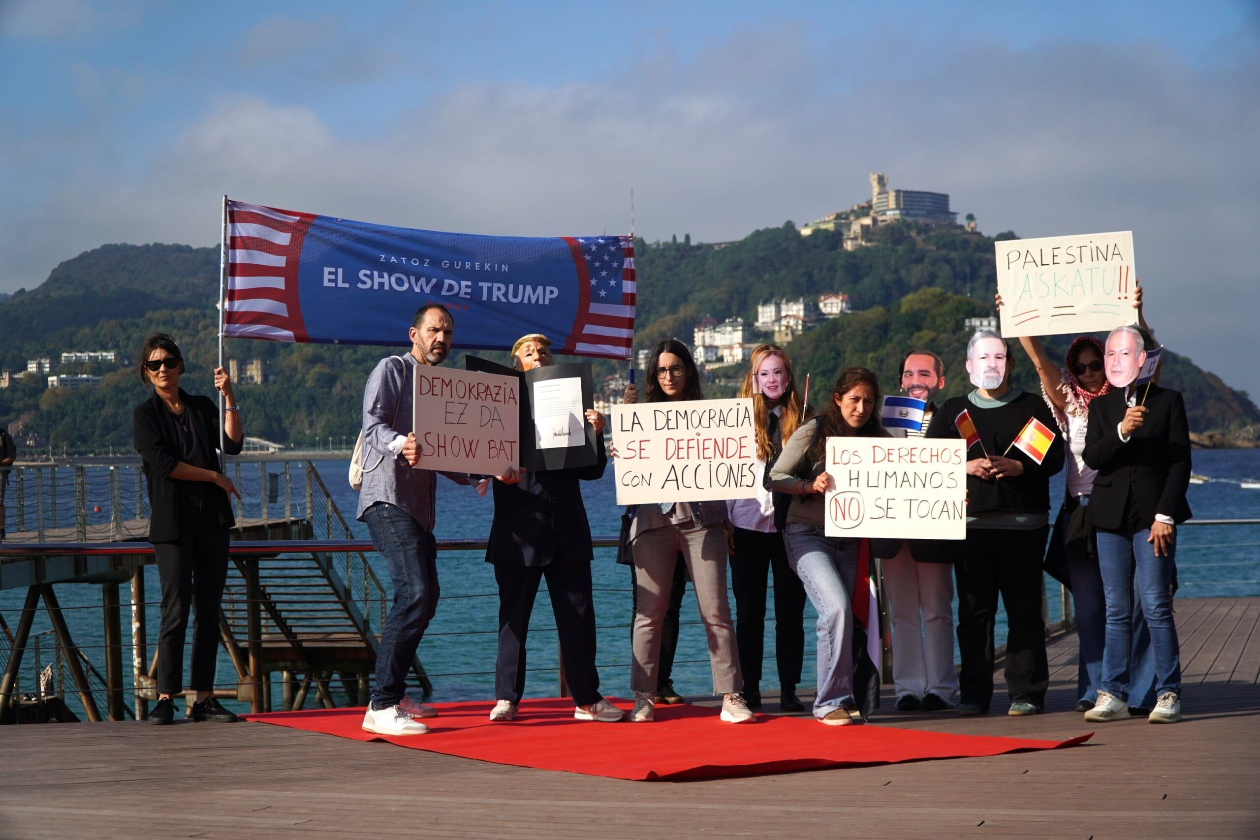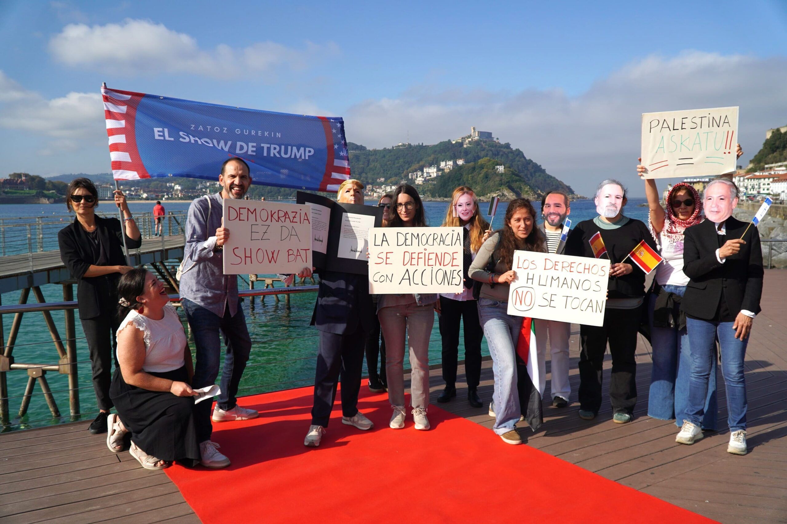 Bertan, performance bat egin dute demokraziaren krisia eta eskuin muturraren gorakada salatzeko. Fikziozko Donald Trump batek, Santiago Abascal, Giorgia Meloni, Nayib Bukele edo Benjamin Netanyahu bezalako pertsonaiek babestuta, bi agindu exekutibo sinatu ditu: bata, milaka pertsonaren asilo-eskubidearen aurkakoa; eta bestea, Gaza resort bihurtzeko Ekialde Hurbileko Riviera Plana. Amaieran, hainbat ekintzaile agertu dira, espazioa hartuz eta Trump eta bere aliatuak ihes egitera behartuz, demokraziaren aldeko oihuen artean.