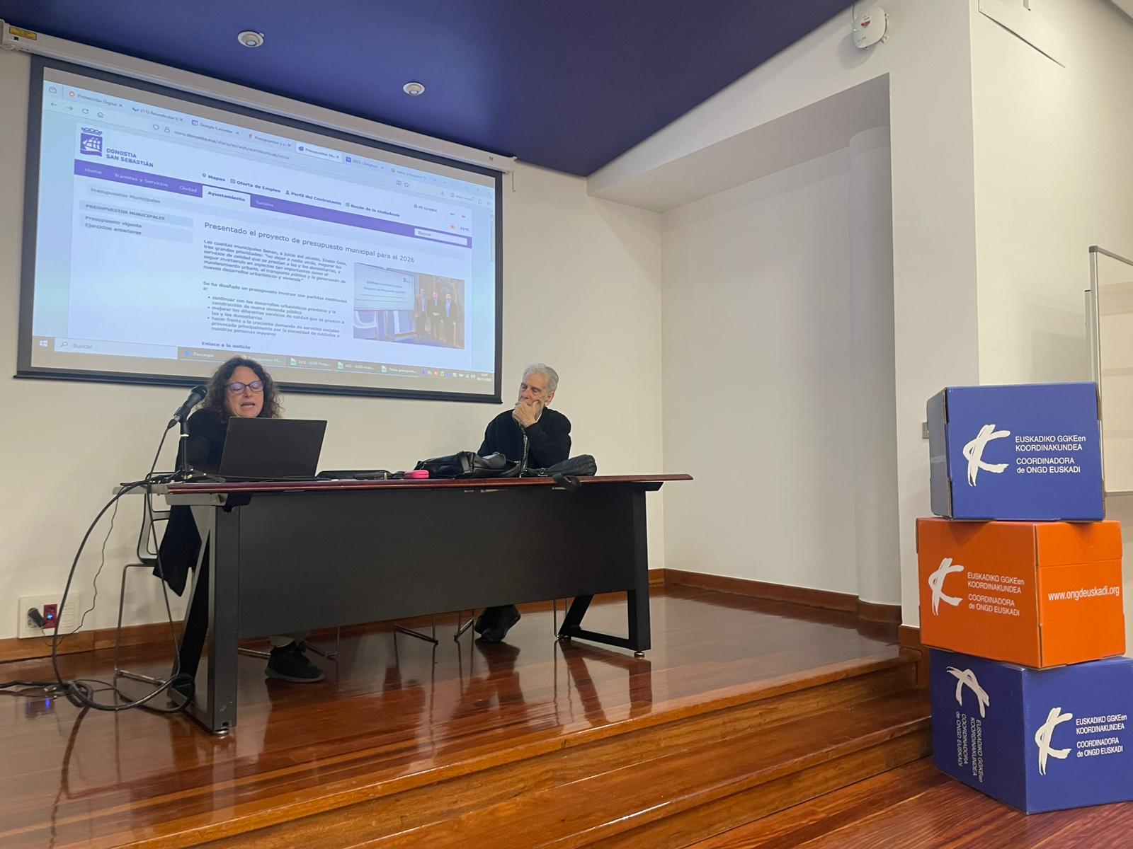 Este miércoles, 5 de noviembre, la Coordinadora de ONGD de Euskadi ha realizado un taller para trabajar los presupuestos de cooperación en las instituciones desde la incidencia política. La formación ha sido impartida por Jesús Otxoa (de Economistas Sin Fronteras) y Susana Piera (de Mugarik Gabe), en el edificio La Bolsa de Bilbao.